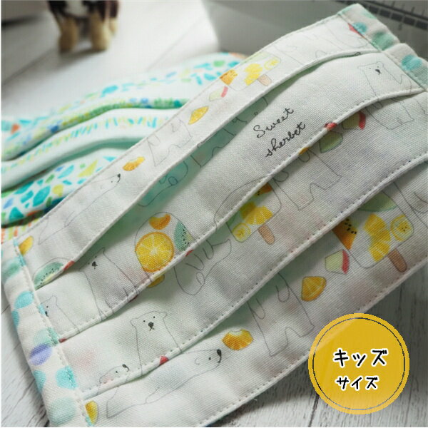 ●サイズ キッズサイズサイズ(幼稚園児ぐらい)およそ12×7センチ (プリーツが折りたたまれている時の平面寸法) 素材:綿100% ダブルガーゼ made in 静岡(←店長ハンドメイド!) ●店長コメント このしろくま君はフルーツ好きなんです。