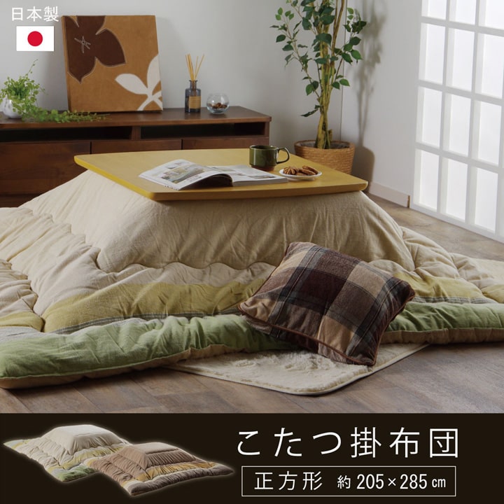 サイズ 約205×285cm (80〜90×135〜150cm幅のこたつ台に適応) 組成 表地=綿100%【インド綿】 裏地=綿100%【インド綿】 中材=ポリエステル100% 3.0kg(東レ マッシュロンわた) 原産国 日本(側地=インド 最終加工=日本) 商品説明 ■生地にインド綿を使用したこたつ布団です。