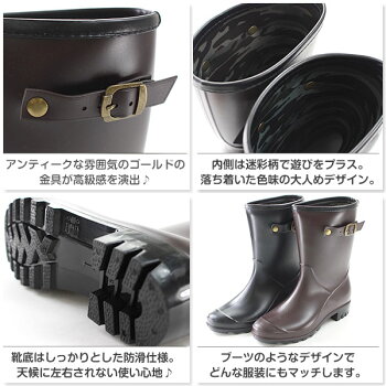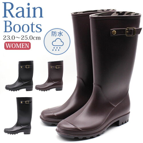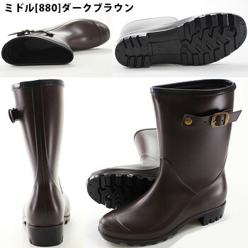 レインブーツ レディース 長靴 ミドル丈 880 ロング丈 879W ロングブーツ 完全防水 靴 滑りにくい 黒 ブラック 茶 ダークブラウン おしゃれ シンプル 無地 疲れない やわらかい 雨 雪 サイドベルト シンプル 通学 通勤 母の日
