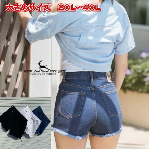 【送料無料】 大きいサイズ レディース ショートパンツ 黒 ハイウエスト ダメージ XL XXL XXXL 2L 3L 4L BIGZIZE 大きめ 春 夏 白 デニム 切りっぱなしデニム カットオフ ダメージ 大きいサイズでもかわいいシルエット 3色のカラーをご用意しています ホワイト、ブラック、ネイビーの3カラー 【在庫がある場合】1日〜2営業日以内に発送します。