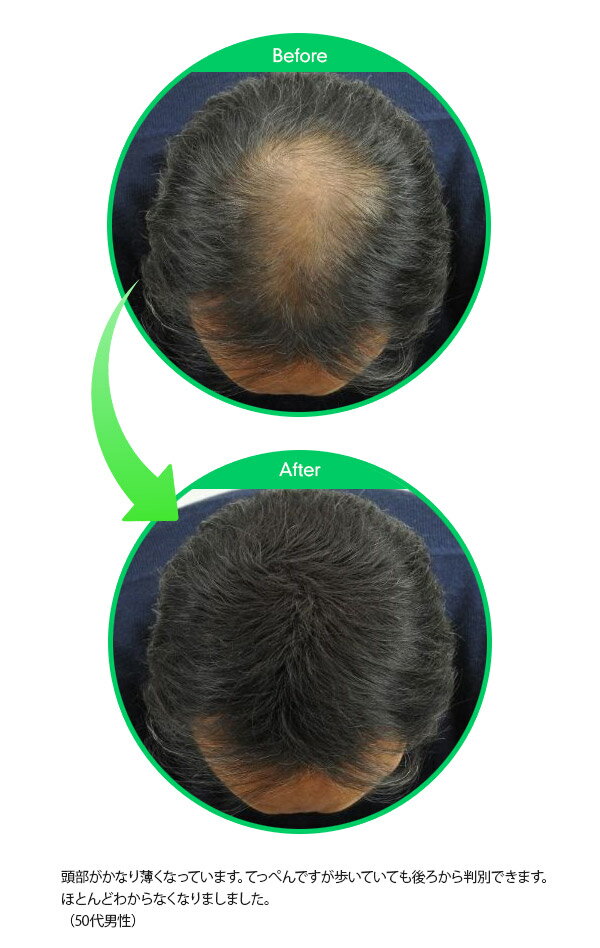 髪を生やすのではなく、瞬時に髪が生えたように見せる、新しいスタイルの若返り増毛化粧方法です。