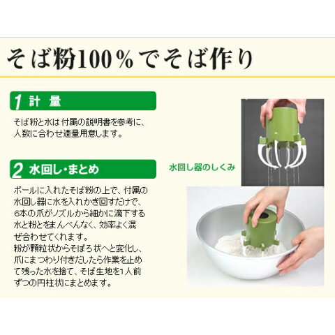 【そば打ち機「そば楽」】キッチン用品 調理器具 そばメーカー 蕎麦メーカー 蕎麦打ち機 製麺機 品名 そば打ち機「そば楽」 商品紹介 ●水回しが簡単に そば作りで難しいとされる水回しが、付属の水回し器で初心者でも均一にまんべんなく作業することができます。