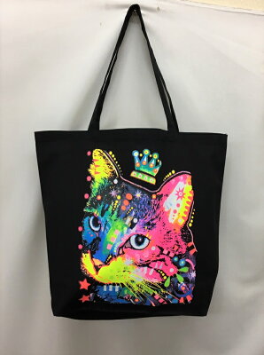 猫 キャット ネオンカラー(ネオンNo.3) ネコ ねこ 猫グッズ Dean Russo トートバッグ エコバッグ マイバッグ【Lサイズ/大】かわいい おしゃれ レディース メンズ 男女兼用 a4 大きめ キャンバス 動物 アニマル ペット オーナーグッズ