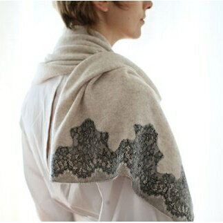 【ふるさと納税】【カシミヤ100%】リバーレースストール サンドベージュ